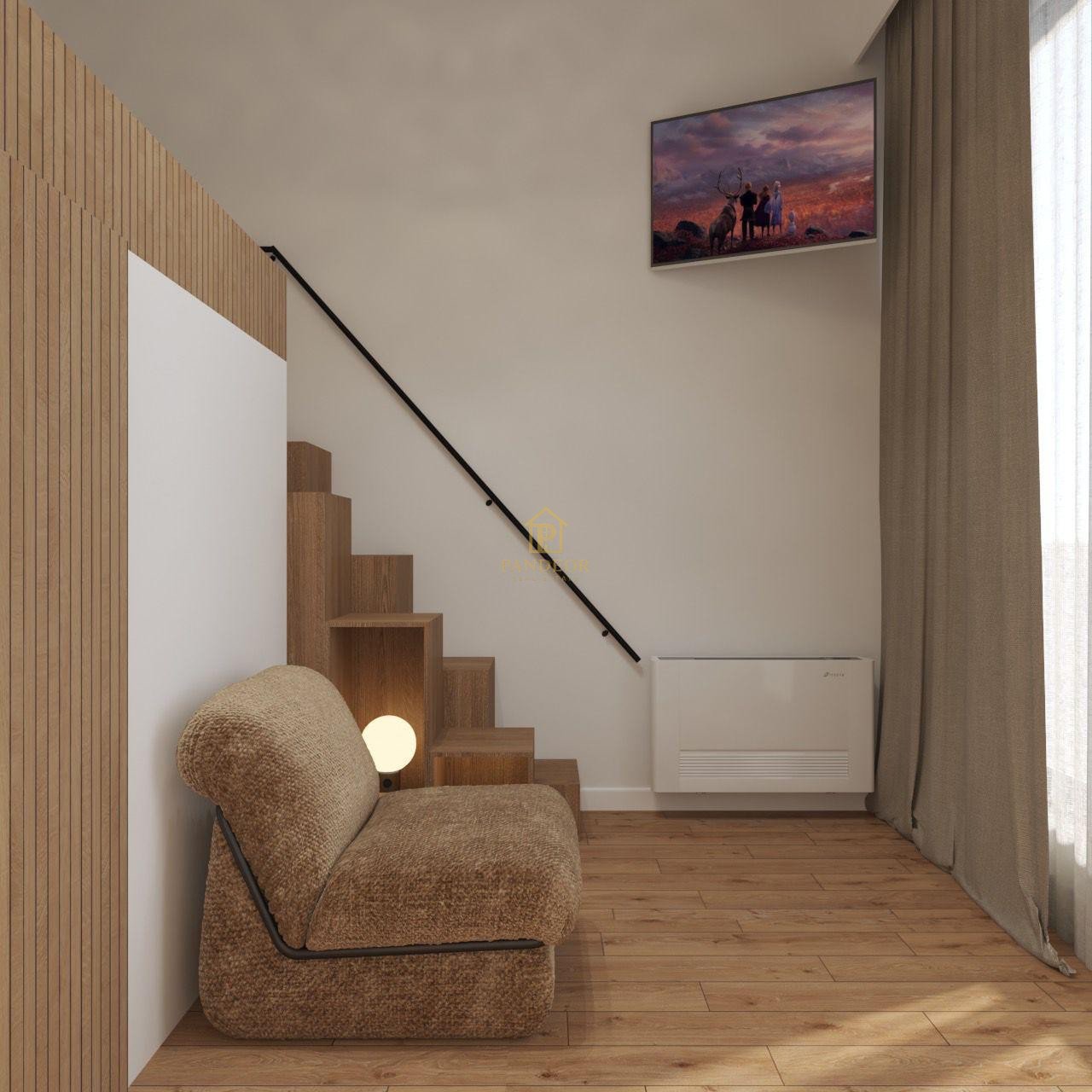 Eshte i perbere nga nje open space me kuzhine dhe pamje nga sheshi Skenderbej.